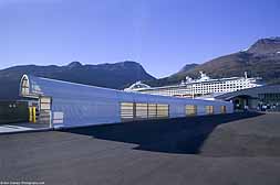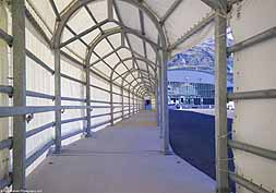 The covered walkway from the parking lot to the ship's